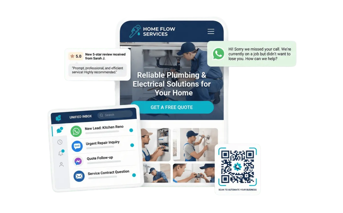 The 6 in 1 System that catches Missed Calls, wins you 5 Star Reviews, and brings back old customers all running in the background while you work.